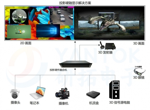 在100平方米的融合投影场景测试中,该方案呈现的3D画面无明显闪烁、撕裂现象,画面边缘融合过渡自然,左右眼画面同步精准,观看者佩戴YT-SG801RF眼镜后,可获得清晰、流畅的3D沉浸体验,视觉疲劳感较传统方案降低35%以上,彻底摆脱了传统3D显示的不适感。